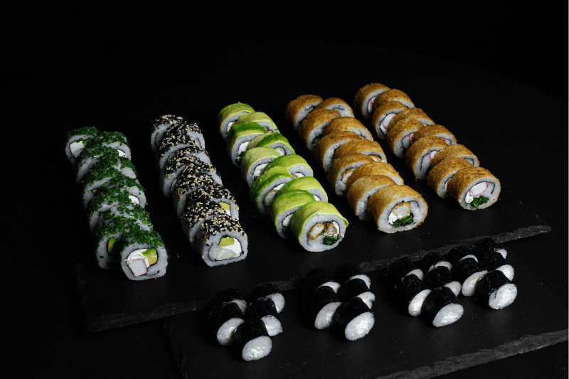 - 20 piezas roll relleno de queso, cubierto con alga nori