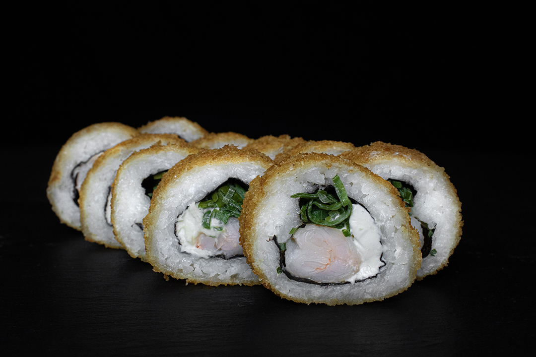 Roll frito en panko relleno de gambas, queso crema y cebolleta (10 piezas)